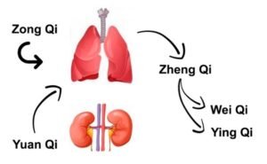 El Zhen Qi se genera en los Pulmones, para lo cual necesita del Zong Qi generado en los mismos y Yuan Qi procedente de los Riñones. Podemos diferenciar dentro de este Zhen Qi, a su vez, de otras dos energías que lo componen: